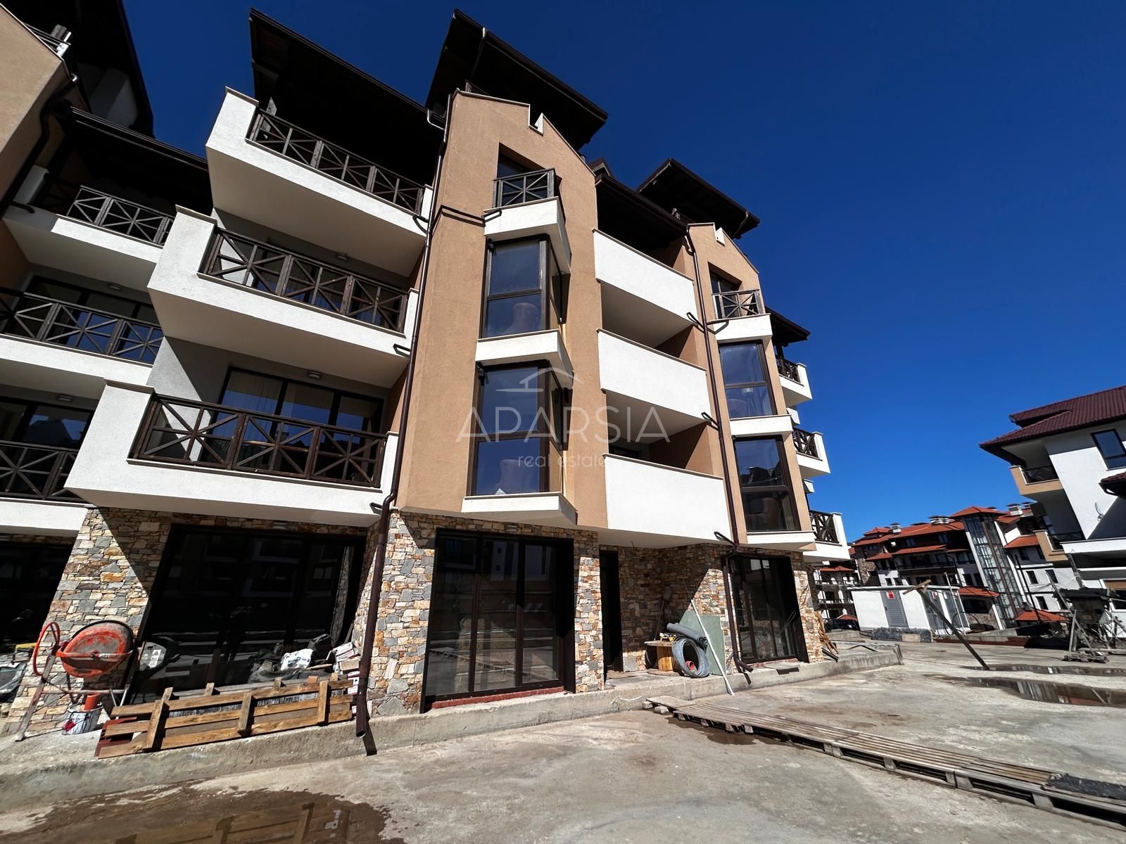 Nacházíte se v luxusním komplexu Pirin Castle – tvořeném sedmi pětipodlažními budovami s flexibilními dispozicemi od studií po rodinné byty 3+kk. Součástí komplexu je wellness centrum, vnitřní i venkovní bazén, recepce v hlavní budově a řada doplňkových služeb, které zvyšují komfort i hodnotu vaší nemovitosti.
